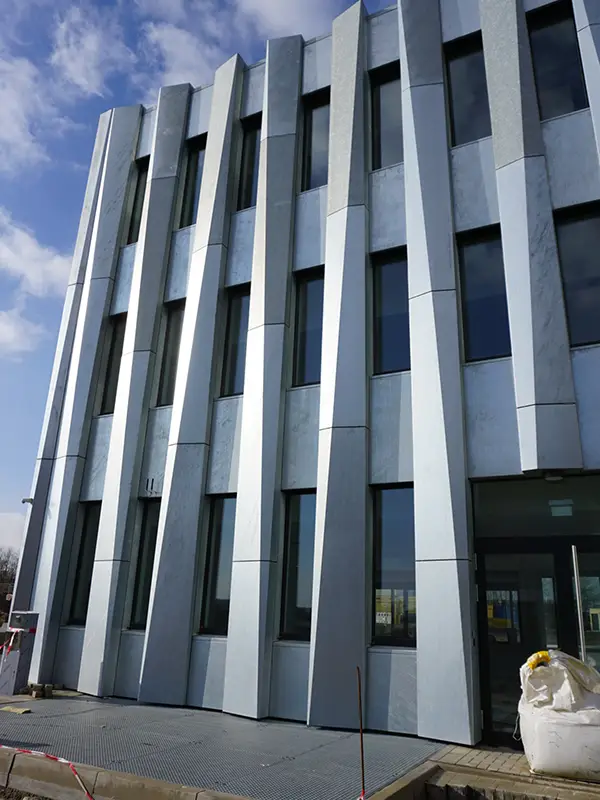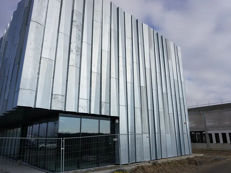 Eine feuerverzinkte Fassade aus 3,0 mm Stahlblech.